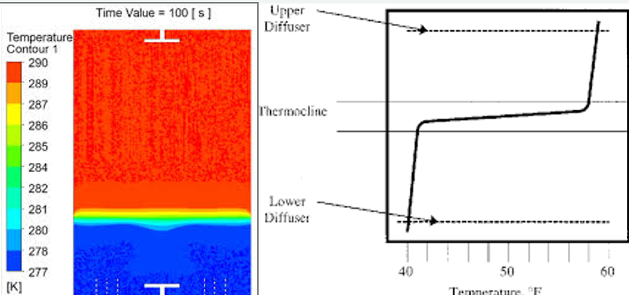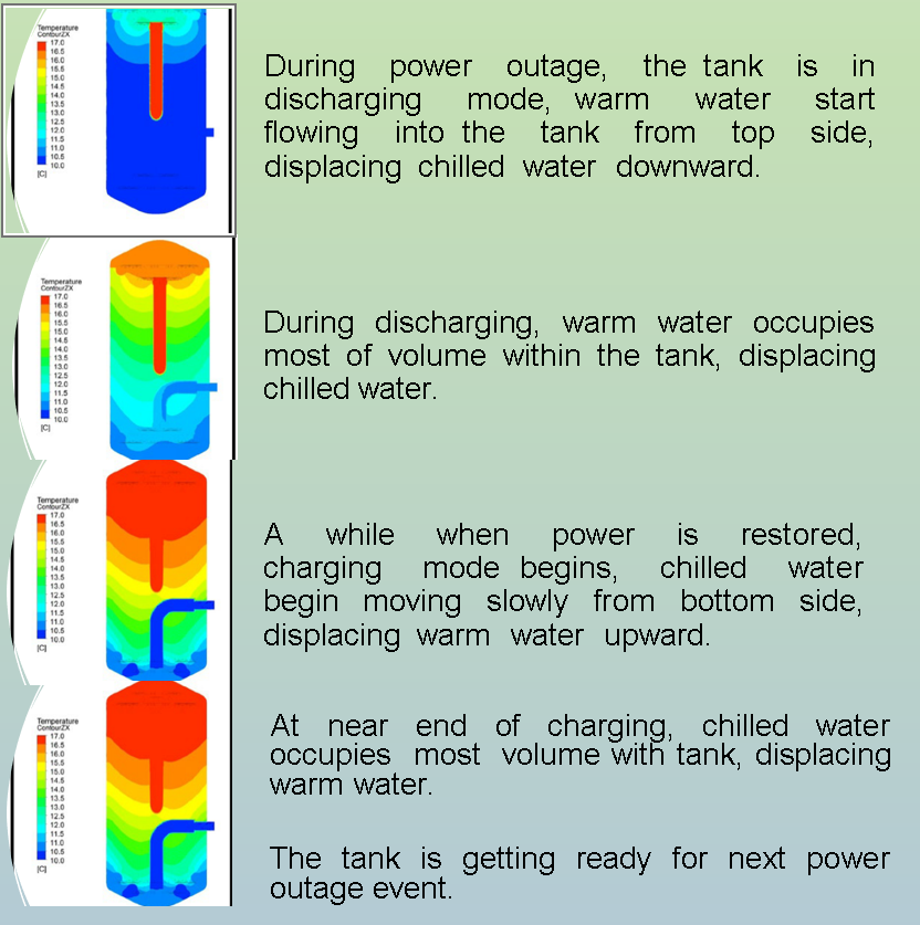 Thermocline shown in Fig. 1 is a transition or separation layer between the hot and cold segment of the buffer tanks. Well-designed stratified buffer tank, supported by Computational Fluid Dynamics (CFD) is having FOMs of about 85 to 95 percent. The operation of vertical buffer tank could be simplified as shown in Fig. 2.